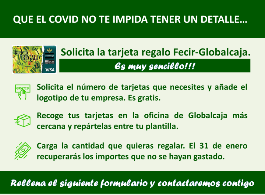 Acepto que mis datos facilitados en el formulario de contacto sean tratados electrónicamente y sean utilizados con el propósito de contactar conmigo para la Tarjeta Regalo del acuerdo entre FECIR y GLOBALCAJA. Soy consciente de que puedo revocar mi consentimiento en cualquier momento.