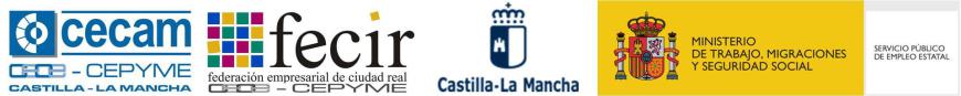 Desde CECAM CEOE-CEPYME CLM y la federación Empresarial de Ciudad Real (FECIR CEOE-CEPYME) se está llevando a cabo el proyecto de “Asesoramiento a las pymes Castellano Manchegas en Formación Profesional para el Empleo” con Nº de Expediente PE/2018/01, financiado por la Junta de Comunidades de Castilla-La Mancha y el Ministerio de Trabajo, Migraciones y Seguridad Social.
